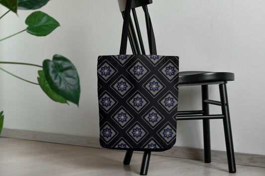 Midnight Blue Floral Granny Squares Print