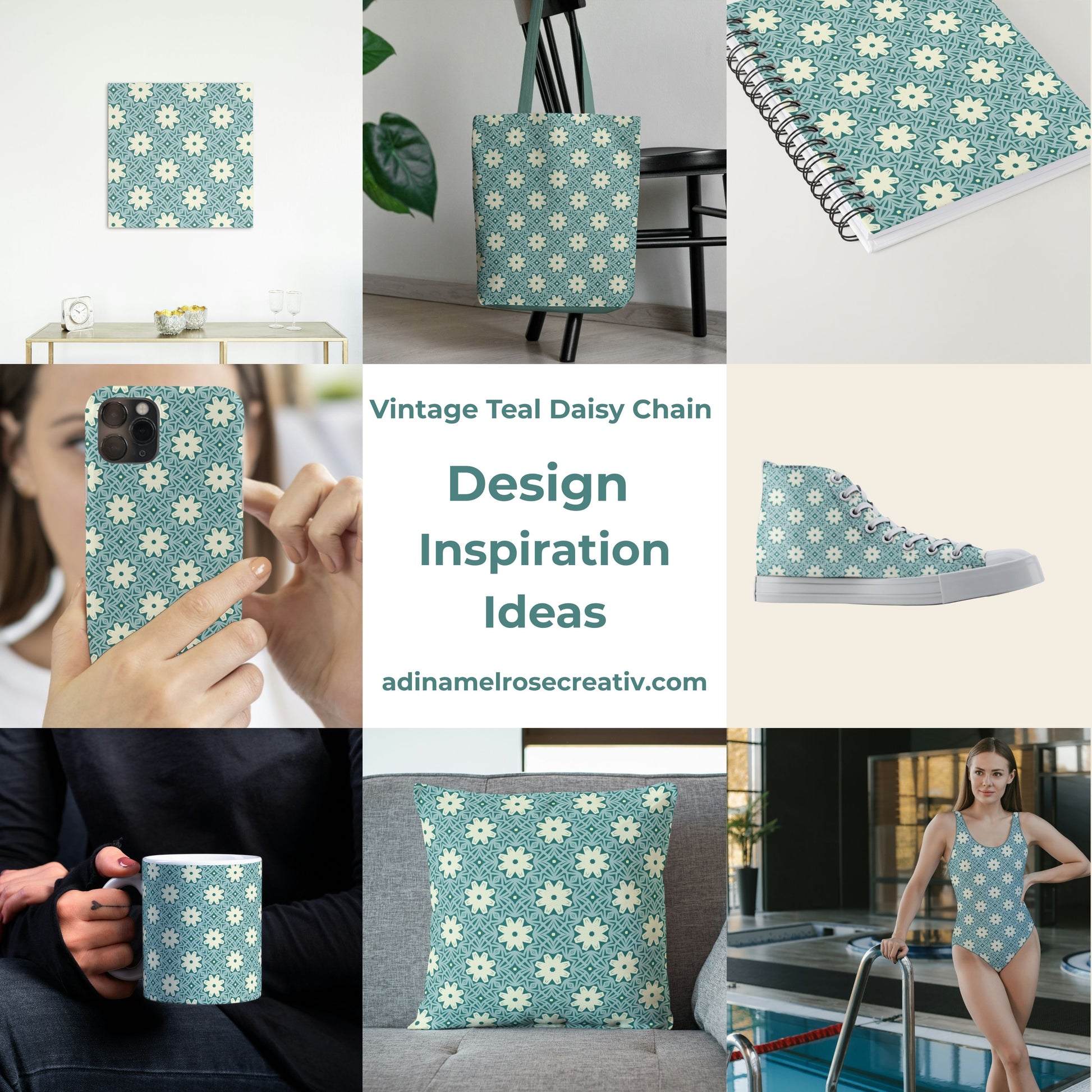 Vintage Teal Daisy Chain Floral Pattern